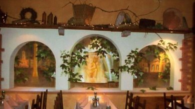 Außergewöhnliches verspricht bereits das Äußere der Trattoria, die sich als ein beeindruckender Gebäudekomplex aus Granitmauerwerk mit dem Originalturm eines alten italienischen Schlosses präsentiert. Der Turm soll ab Frühjahr 2004 auch ein Wein- und Olivenmuseum beherbergen. In den Sommermonaten bietet die Fassade mit den Weinreben, Palmen, Olivenbäumen und Zypressen den idyllischen Hintergrund zum Genießen im „Giardino Aubergine“. Aber auch in den Innenräumen sorgen die stilvolle Einrichtung aus Kastanienholz und ein gemütlicher Eckkamin ganzjährig für toskanisches Flair.